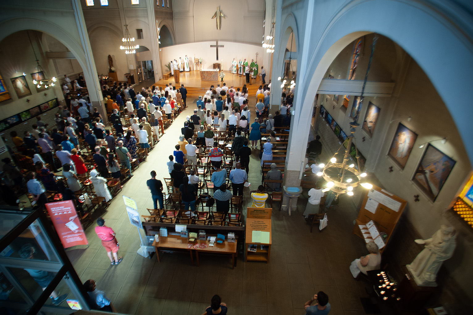 Messe en l’église Saint-Joseph-des-Epinettes à Paris le 13 juin 2021, après la rénovation des locaux paroissiaux. (Crédit GF/CDC)