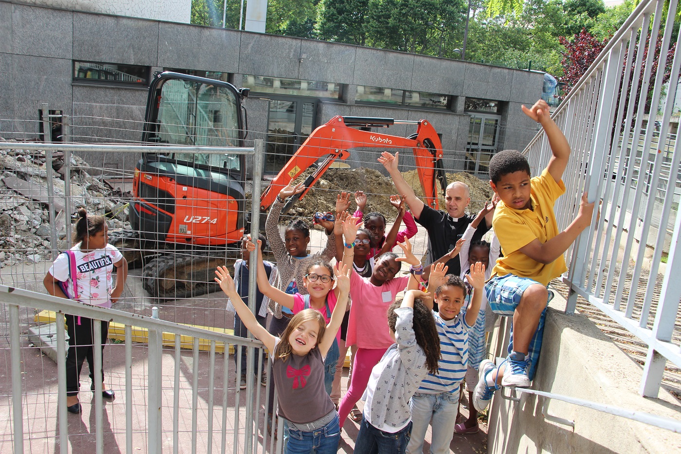 Enfants devant l’église Sainte-Claire-d’Assise