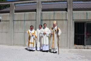 Mgr Lalanne et les pretres et diacres de la paroisse. CDC