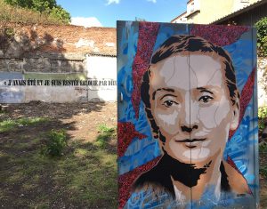 Le portrait de Madeleine Delbrêl a été réalisé sur les portes du bâtiment autrefois situé au fond du jardin.