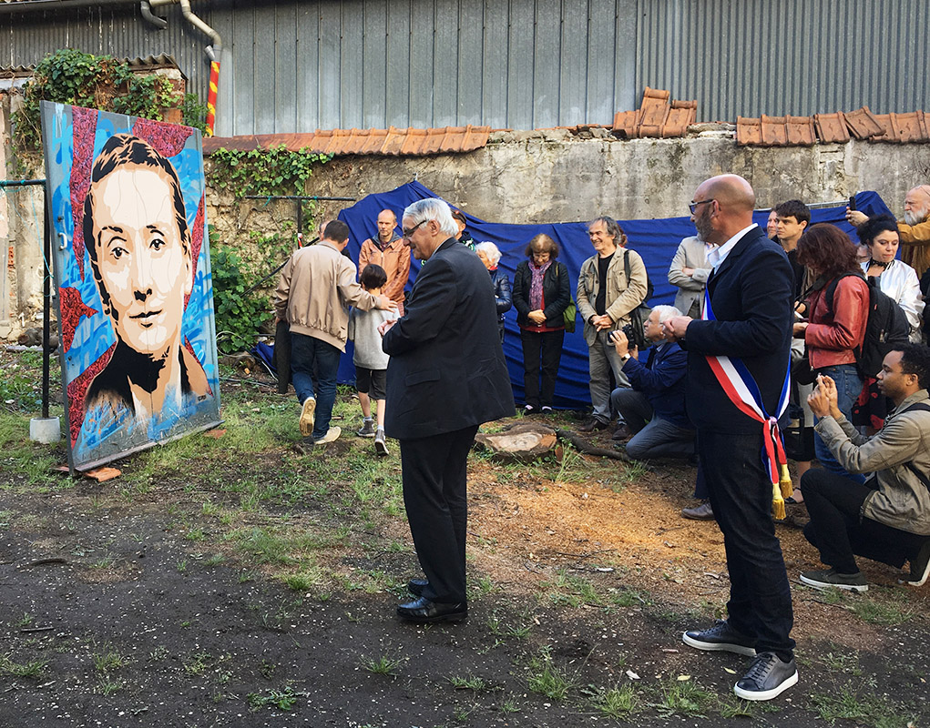 Mgr Michel Santier et le maire d’Ivry Philippe Bouyssou dévoilent le portrait de Madeleine Delbrêl.