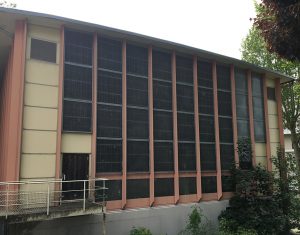 Le mur vitrail (derrière le chœur) a été restauré au printemps 2019.