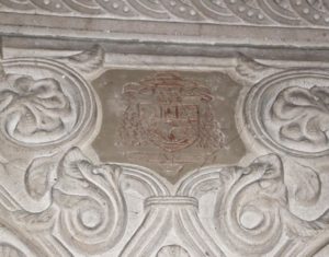 Les armes du cardinal Jean Verdier sur l’un des piliers de l’église.