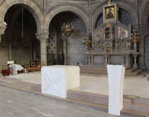 L’autel et l’ambon ont été sculptés dans un marbre rare du Portugal. (juin 2020)
