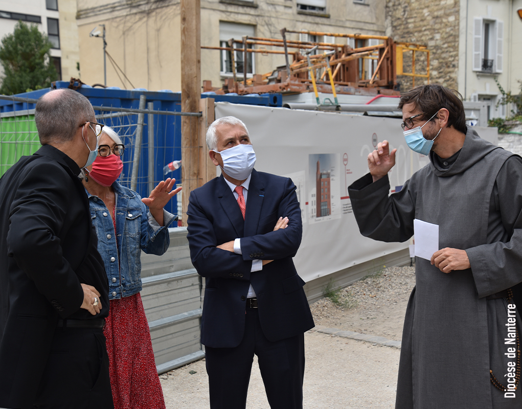 A gauche, le père Barthélemy s’entretient avec le maire de Boulogne-Billancourt Pierre-Christophe Baguet.