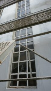 Des fenêtres éclairant la cage d’escalier en très mauvais état, fissurées et non isolantes