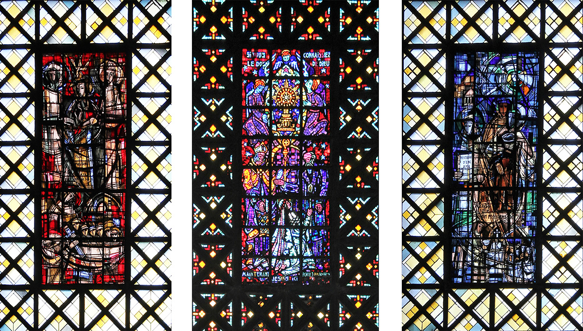 Trois des grands vitraux de l’église de Boulogne-Billancourt