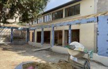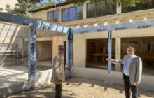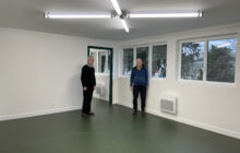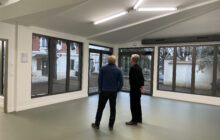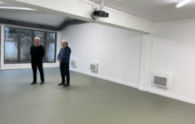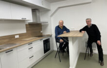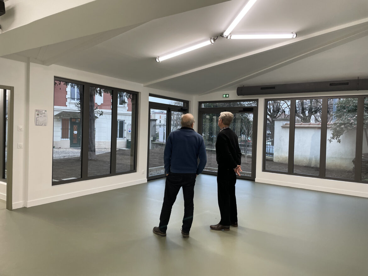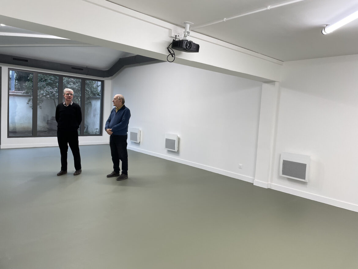 Le p Jacques Cramet, curé de la paroisse St Christophe de Créteil et Eric Seillier, chargé du suivi des travaux, dans la cuisine des locaux agrandis. janvier 2023 (RDV/CDC)