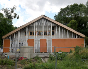 Vue d’un des deux pignons de l’église. Le logement des religieuses est aménagé au premier étage. (GF/CDC)