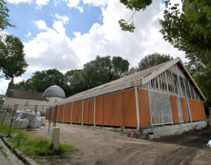 Derrière les protections en bois, les grilles de métal formant un déambulatoire ont été posées. (GF/CDC)