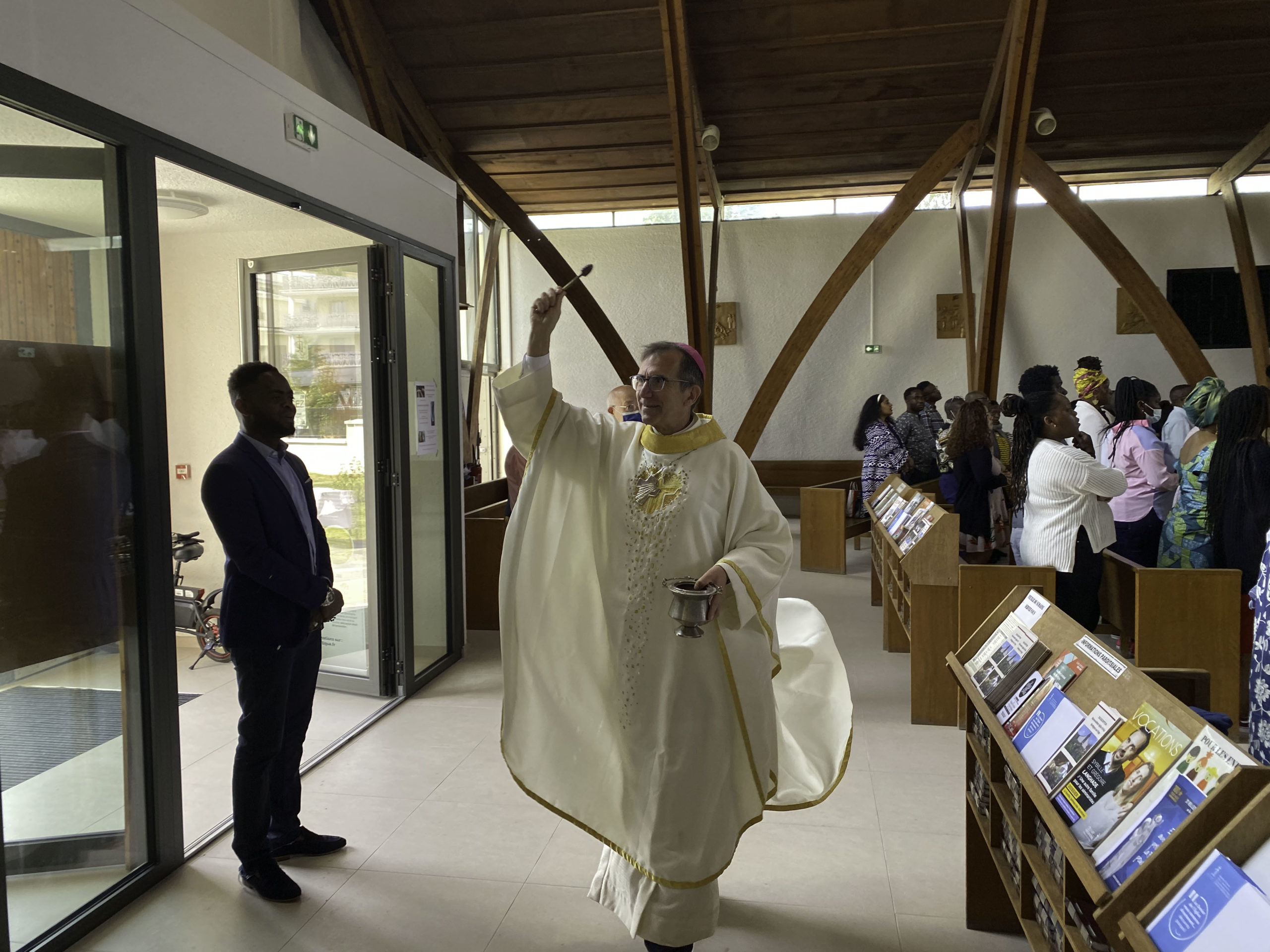 Bénédiction de l’église et des fidèles par Mgr Pansard à Brétigny, mai 2022. (CDC)