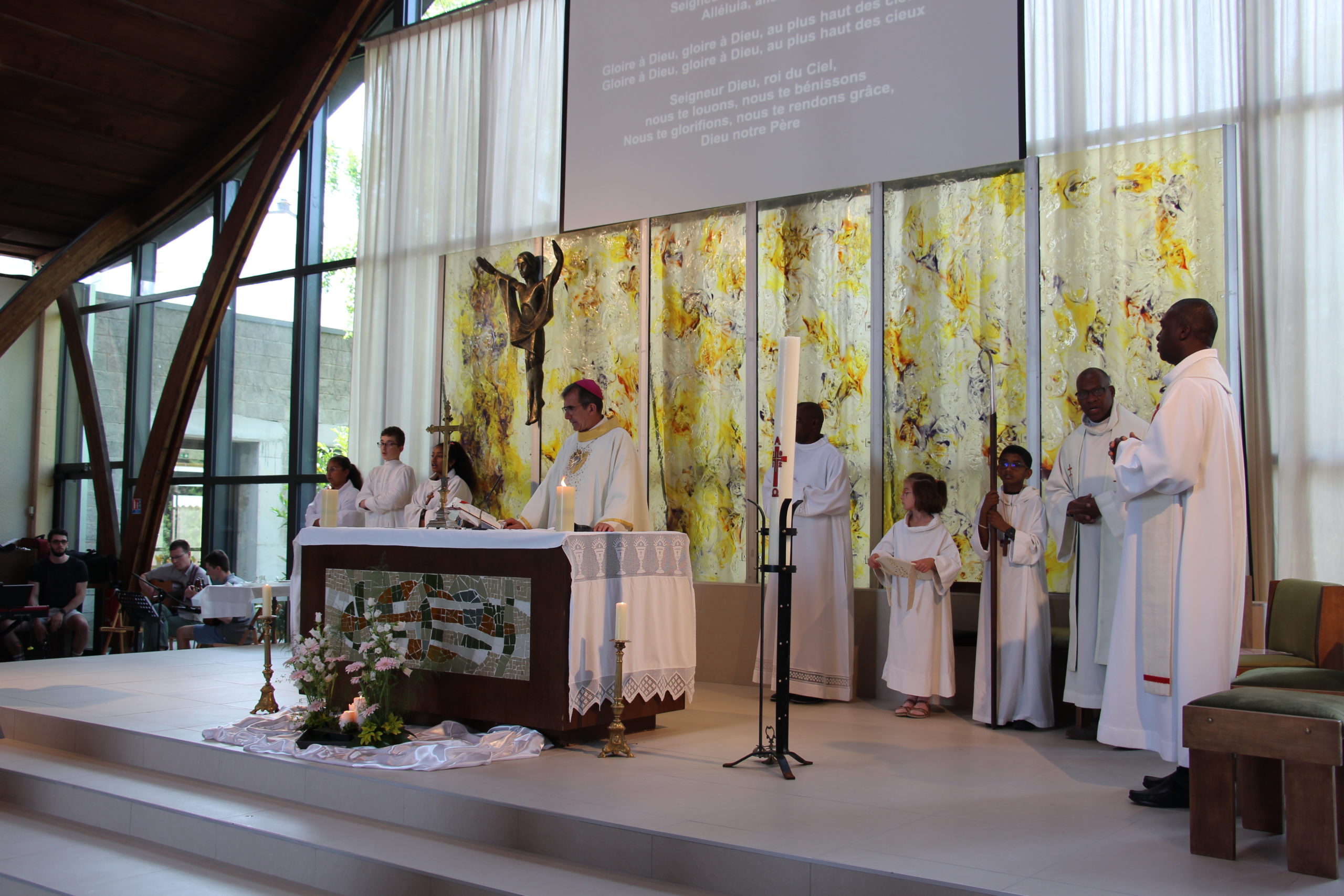 Mgr Michel Pansard, évêque du diocèse d’Evry-Corbeil-Essonnes célébrait la messe marquant la fin des travaux dans l’église Saint-Paul de Brétigny. Mai 2022 (CDC)