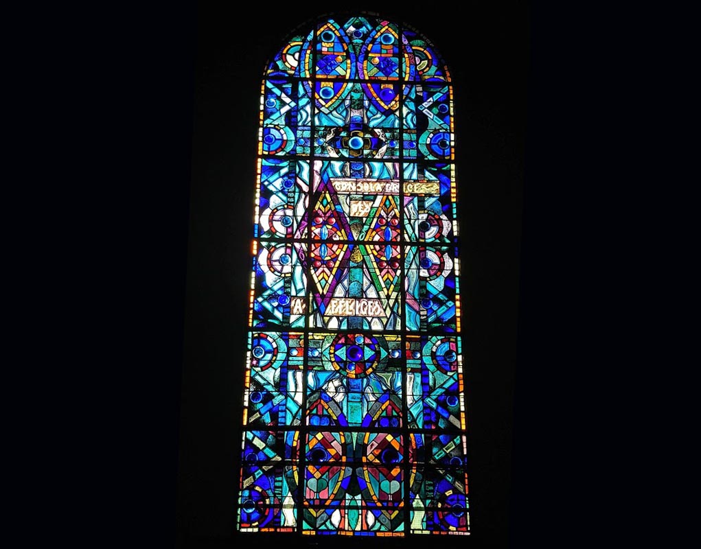 Les vitraux sur le bas-côté de l’église ont été réalisés par les Ateliers Mauméjean.