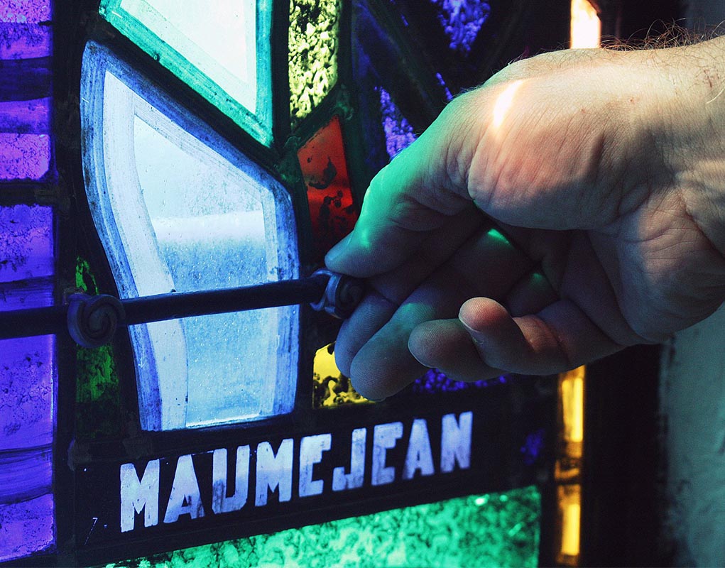Les vitraux ne sont pas figuratifs, la couleur dominante est le bleu.