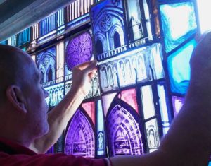 Les vitraux sont en réalité un assemblage de panneaux plus petits.