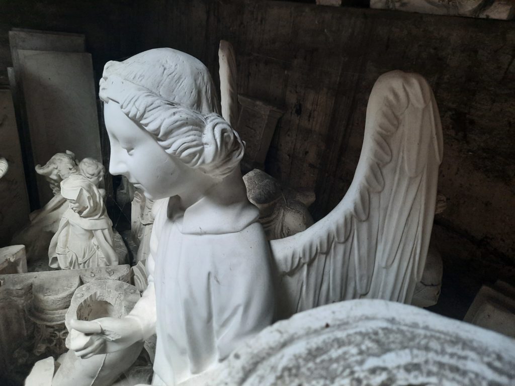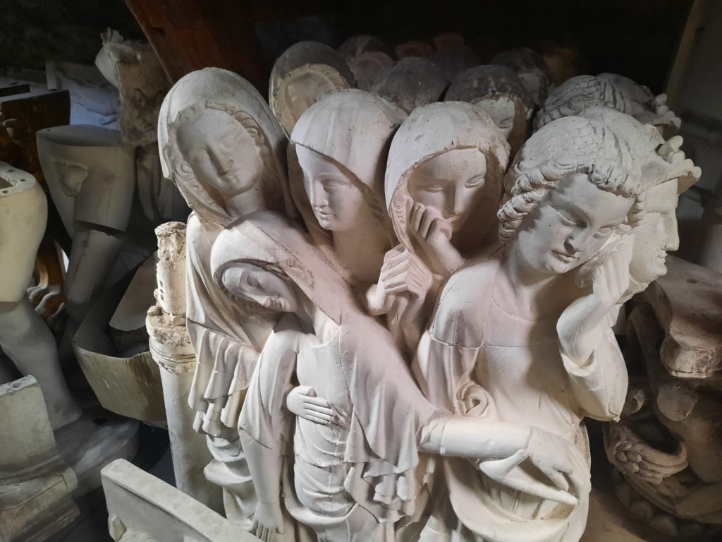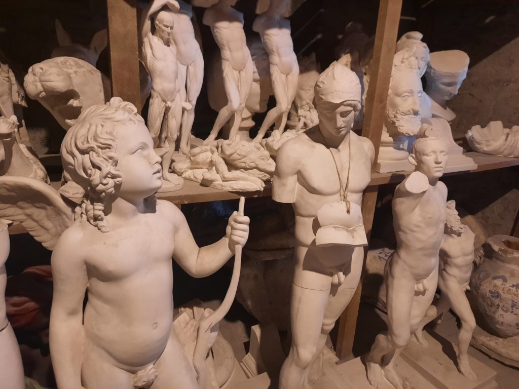 Le long d’un autre mur, sont entreposés les moules soigneusement dénommés et numérotés à l’encre rouge ou noire : Femme inconnue, n°405. Une collection unique qui continue de s’agrandir. « Vous avez devant vous des puzzles en trois dimensions. Certains sont composés simplement de deux pièces, d’autres comme cette Diane chasseresse, peuvent être riches de quinze pièces voir de deux-cents pièces comme ce petit cheval du XIXe siècle, un vrai casse-tête pour le mouleur qui l’assemblera ! » Celui de l’ange, qui était situé au sommet de la chapelle du château du Lude, est composé de six pièces : deux pour le corps, deux pour les mains et deux pour les ailes. Cette girouette en cuivre du Moyen-Âge avait été déplacée au musée de Cluny au milieu du XIXe, puis vendue à la Frick collection de New-York. On peut désormais en obtenir une reproduction !