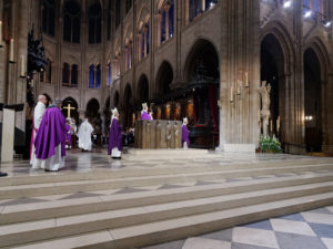 Aménagement du choeur avant l’incendie, avec l’autel de Thouret. (Crédit Y Boschat ADP)