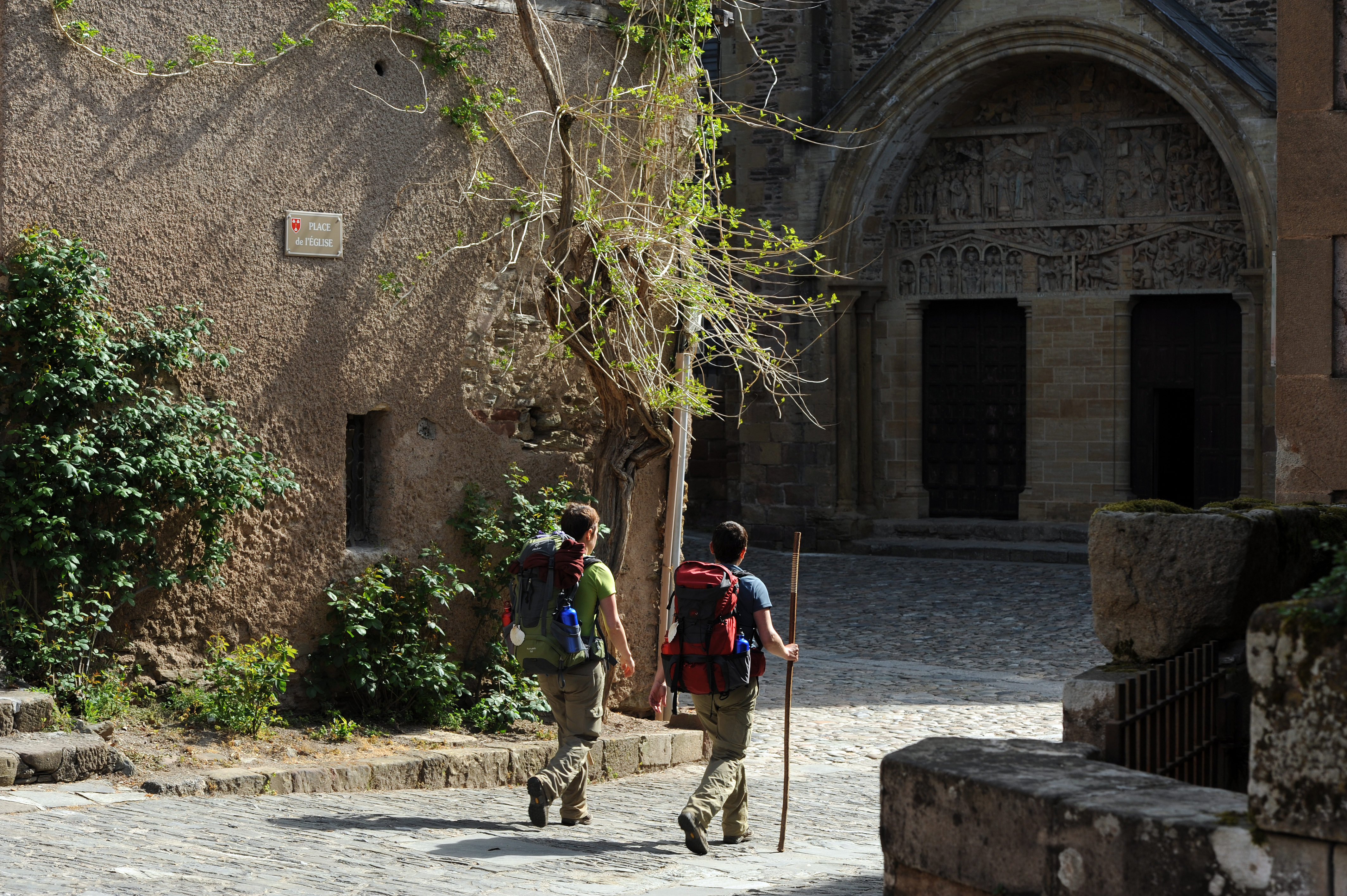 Marcheurs devant le tympan Conques@ACIR JJ Gelbart