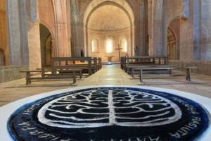 « Memoria mundi », ou la mémoire du monde d’Anne et Patrick Poirier. Cette œuvre accueille le visiteur à l’entrée de l’abbatiale du Thoronet.• (Crédit FTV )