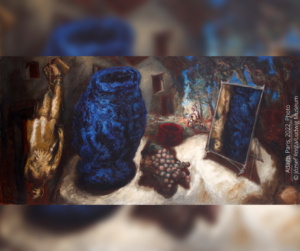 Le Pendu, le vase et le miroir, 1985 Huile sur toile 250 × 500 cm Ludwig Museum – Museum of Contemporary Art, Budapest © Adagp, Paris, 2022. Photo © József Rosta/Ludwig Museum