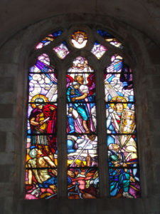 Vitrail Aux morts de la guerre dans l’église Saint-Macre de Fère-en-Tardenois dans l’Aisne, église XVe classée Monument historique.