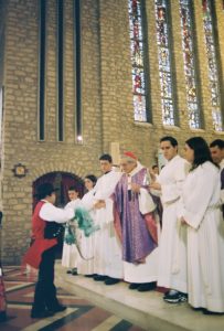 Le cardinal Jean-Marie Lustiger, célébrant une messe dans l’église Marie-Médiatrice. (Crédit CDC)