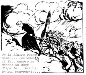 Dessin humoristique paru dans le journal La Plaine montrant Mgr Edmond Loutil, dit Pierre Lermite,.