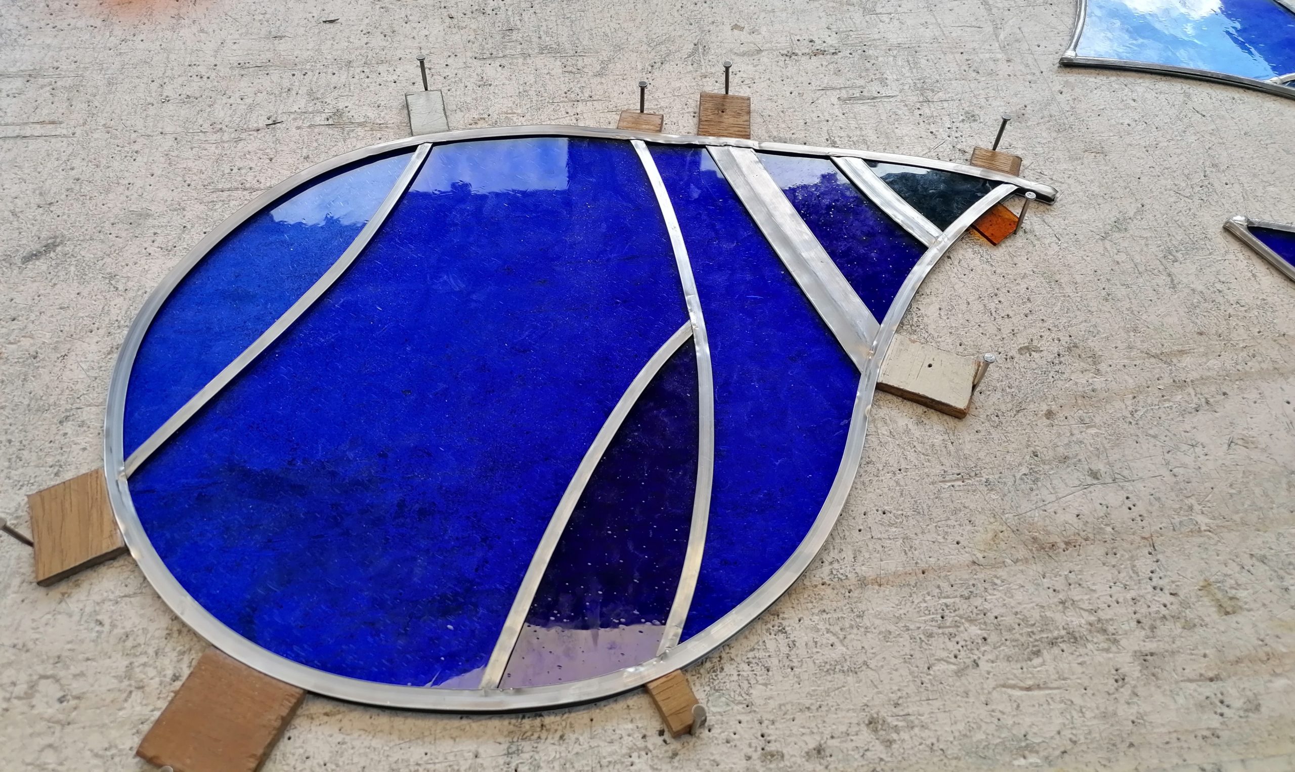 Détail de mise en plomb d’un vitrail. (Crédit Atelier Loire)