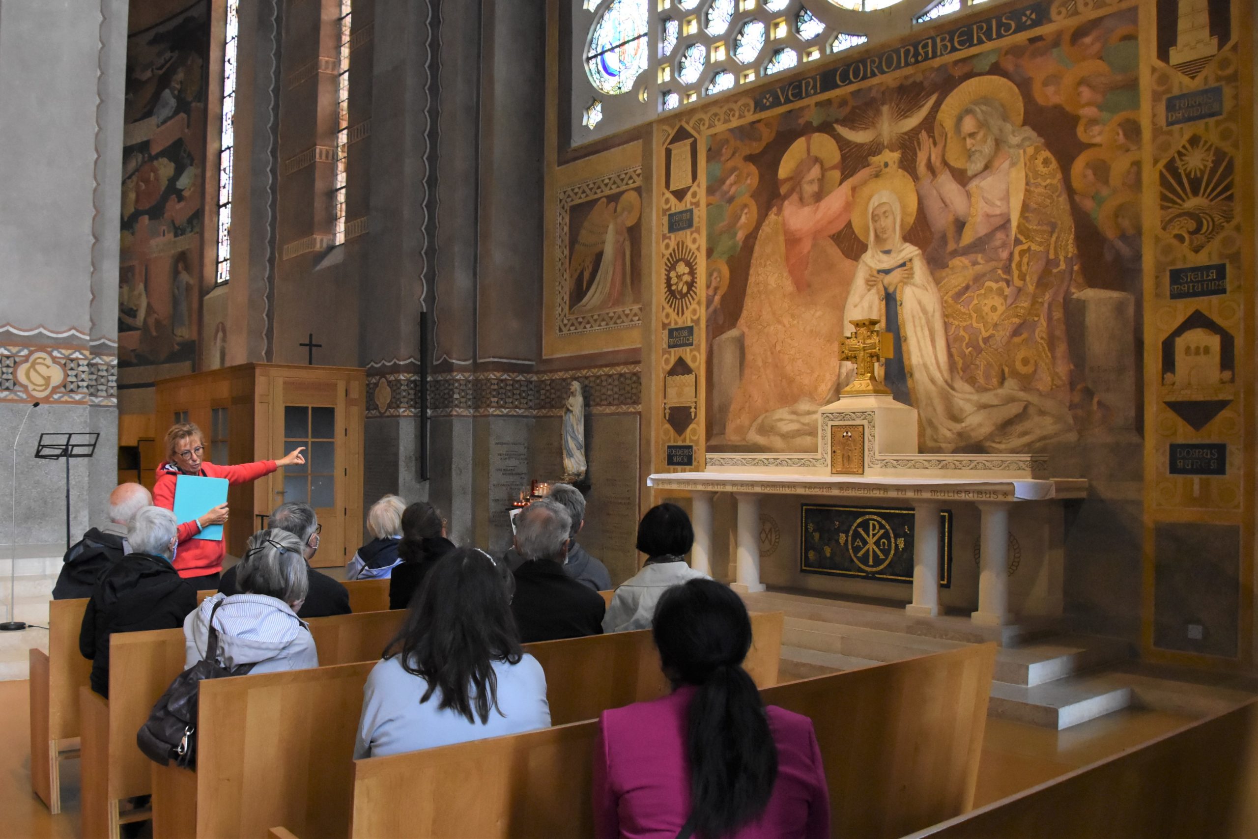 Fresque de la Vierge couronnée par la Trinité, réalisée par Paul Baudouin et Louis Dussour, dans la cathédrale de Nanterre. (KD/CDC)