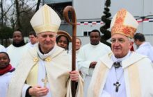 Premières pierres de la future église Sainte-Bathilde à Chelles (77) – Mgr Nahmias, évêque de Meaux, et Mgr Migliore, nonce apostolique