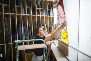 Prix Patrimoine Pèlerin 2021 Corbeil. Vitraux pour l’Eglise Saint-Joseph. Ateliers Duchemin. Marie Rousevoal des Ateliers Duchemin (Vitraux pour l’Eglise Saint-Joseph. Ateliers Duchemin. Pierre Mabille (au centre). David Morgant (g). Désiré Dovonou (d, président de l’association). Marie Rousevoal des Ateliers. (Photos Laurent Hazgui pour Le Pèlerin)