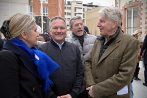 De gauche à droite : Alice Fabre, directrice, Jean-Pierre Gaspard, directeur général bénévole des Chantiers du Cardinal et Pascal Cornu-Thenard, délégué de la paroisse. Janvier 2023. (Gil Fornet/CDC)