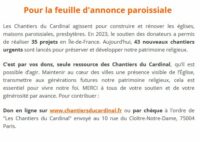 vtete@chantiersducardinal.fr ou 06 76 95 52 30