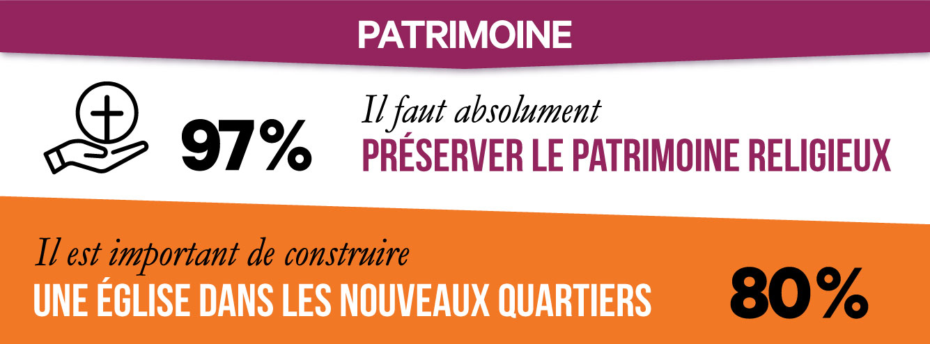 « Il faut préserver le patrimoine religieux » c’est le message essentiel à retenir de notre enquête de novembre 2018. Pour 97% des personnes interrogées, la préservation du patrimoine religieux est une priorité.