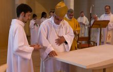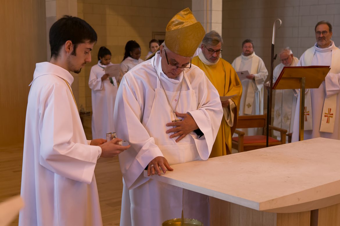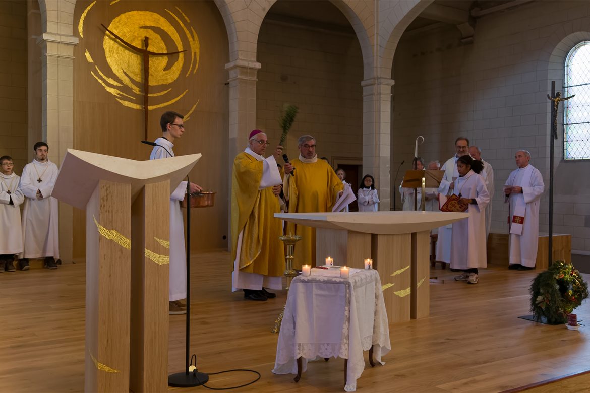Le 11 décembre 2016, monseigneur Michel Santier a présidé la cérémonie de dédicace du nouvel autel… Des travaux de réaménagement étaient absolument nécessaires pour des raisons liturgiques et sécuritaires. Les différents niveaux du chœur de l’église limitaient en effet l’accessibilité et faisaient courir des risques de chute.