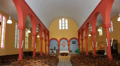 L’intérieur de l’église en béton armé Saint-Joseph-des-Quatre-Routes a bénéficié d’importants travaux de rénovation terminés en juillet 2016. Une remise en valeur du chœur complète la transformation. Ces travaux donnent un véritable élan à une communauté située dans un quartier peu favorisé d’Asnières-sur-Seine.