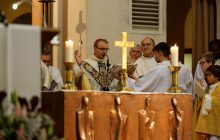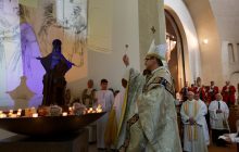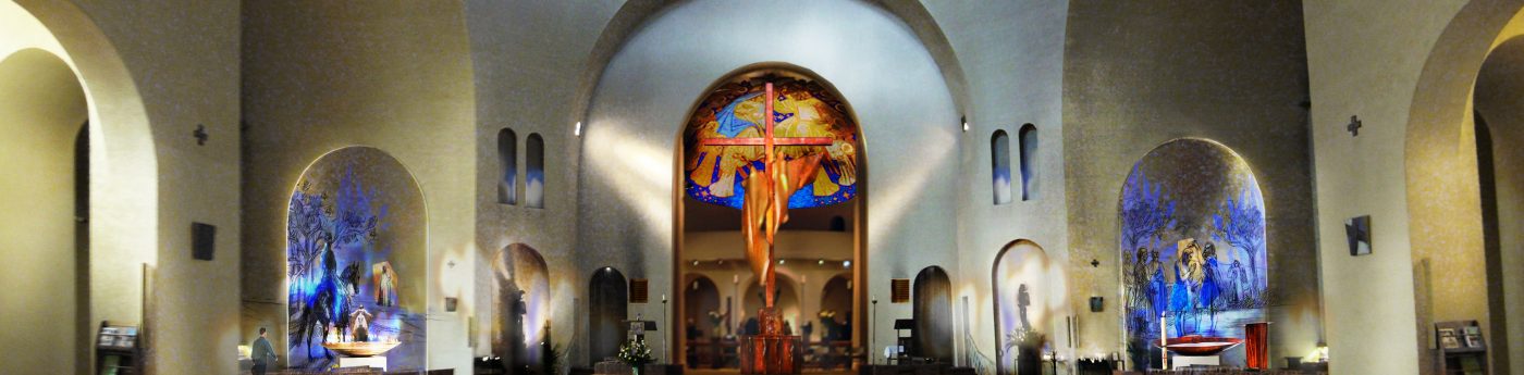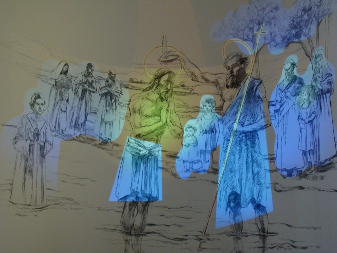 À droite, les grandes étapes de la vie publique du Christ appelés « les Mystères lumineux ». Le 16 octobre 2002, le pape Jean-Paul-II publie la lettre apostolique Rosarium Virginis Mariae. Cette lettre formalise la prière du Rosaire comme un résumé de l’Évangile. Dans cette prière, les autorités ecclésiastiques identifient quatre Mystères de la vie du Christ : le Mystère joyeux (Annonce, naissance et enfance du Christ), le Mystère lumineux (la vie publique du Christ de son baptême à la Passion), le Mystère douloureux (Passion et crucifixion du Christ), le Mystère glorieux (de la résurrection du Christ à l’Assomption de Marie). À ces mystères s’ajoutent la Visitation et la Résurrection.