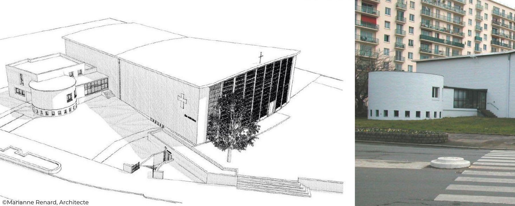 Le projet prévoit la construction d’un logement adossé à l’église, bâti derrière et au-dessus des locaux paroissiaux existants qui seront.
