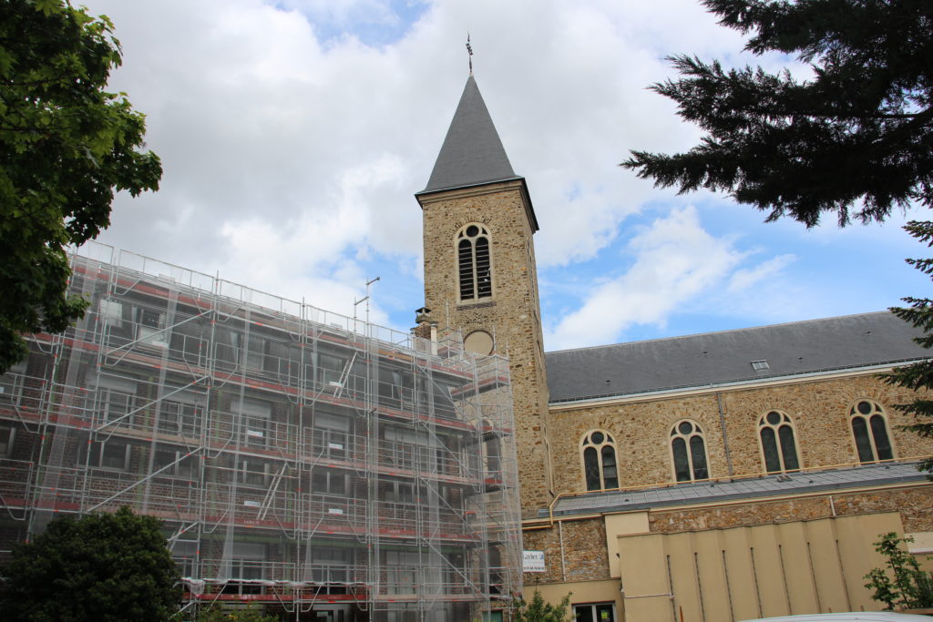 Tout au long du chantier, dans l’église, un panneau explicatif raconte aux paroissiens l’avancée des travaux. Les règles sanitaires n’ont pas permis de faire appel aux bénévoles pour vider les locaux pendant le confinement de l’hiver 200/21 (« 150 tables et chaises, 60 ans d’archives… » se souvient le père Lanthonie), il a fallu faire appel à une entreprise. De la même façon, les photos racontent le chantier de l’intérieur et donnent une idée du coût des travaux. « Chacun sait combien coûte un robinet à changer chez soi, poursuit le curé. Mais dans la maison paroissiale il y en a 45 ! » En mai 2021 les échafaudages entourent le bâtiment. Les travaux intérieurs ont aussi commencé.