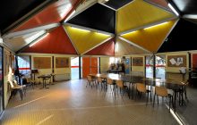 Le bâtiment a été construit en 1976 sur une surface de 250 m2 avec une forme originale : plusieurs carrés surmontés d’une toiture multiple dont des pans touchent le sol, rappelant la forme d’un chalet, d’où son surnom. La toiture endommagée a entraîné une dégradation rapide du bâtiment. Une rénovation complète s’imposait.