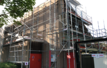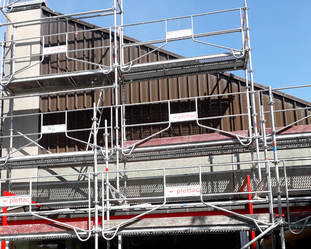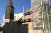 Des échafaudages sur le toit de Sainte-Marie-des-Peuples à Cergy