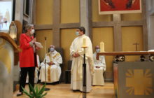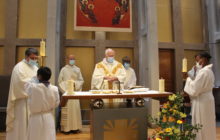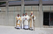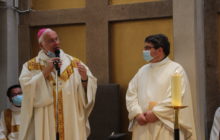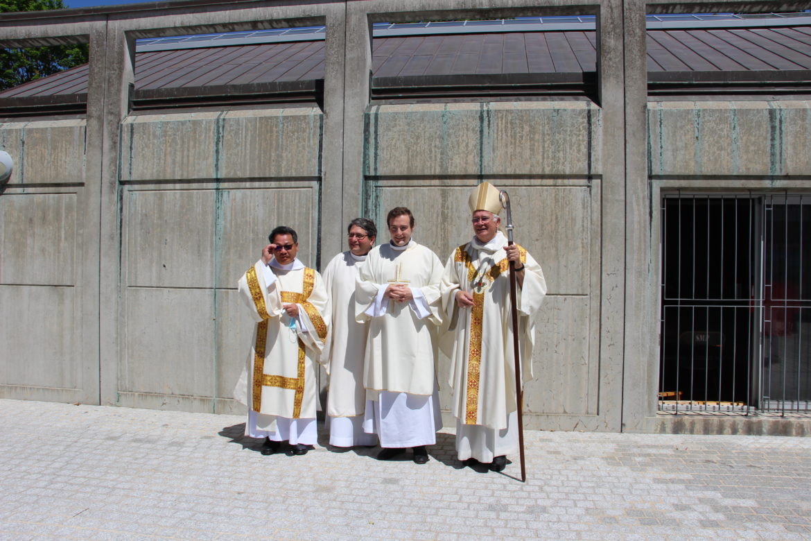 Mgr Stanislas Lalanne et le père Jean-Marc Pimpaneau, curé de la paroisse de Cergy lors de la messe du 13 juin 2021 en l'église Sainte-Marie-des-Peuples. (Crédit CDC)