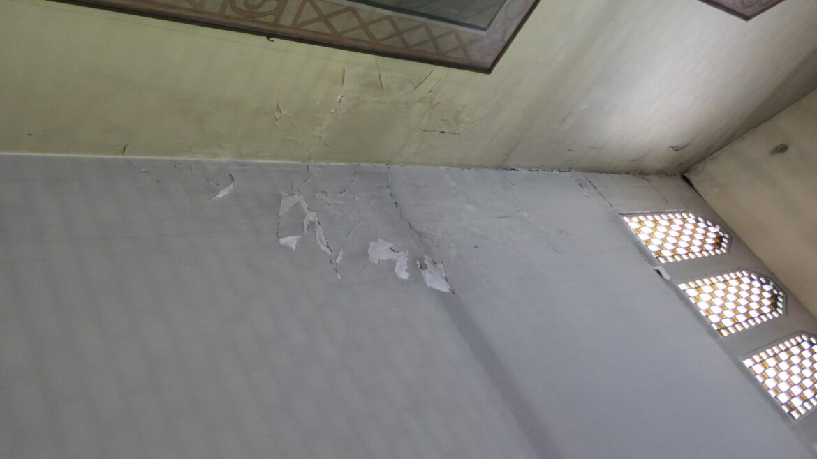 Une des chambres quasiment achevées avec vue sur l’église, toute proche