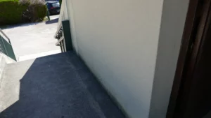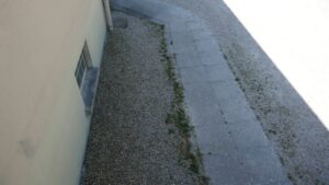 Le cheminement en dalles serait élargi et prolongé pour atteindre le secrétariat. Si le bungalow n’est pas équipé de salle d’eau ou de sanitaire pour des raisons d’espace et de coûts, une tranchée sera malgré tout nécessaire pour son alimentation électrique.