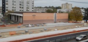 Le centre Saint-Damien-de-Veuster situé sur une grande place d’Epinay-sous-Sénart le long d’une important voie de circulation (François Farez).