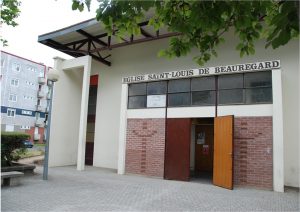 Entrée de l’église Saint-Louis-de-Beauregard à Poissy, labellisée « Patrimoine du XXe siècle ».