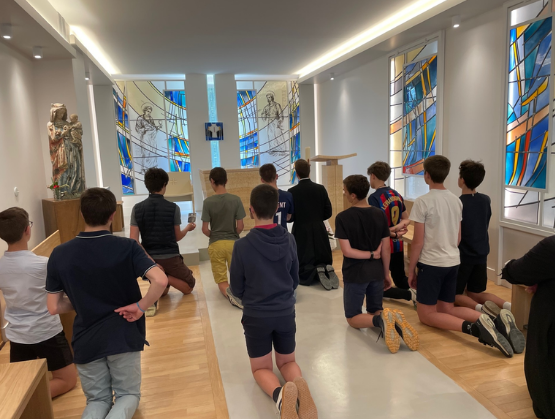 Des jeunes priant dans la chapelle lors des Portes ouvertes